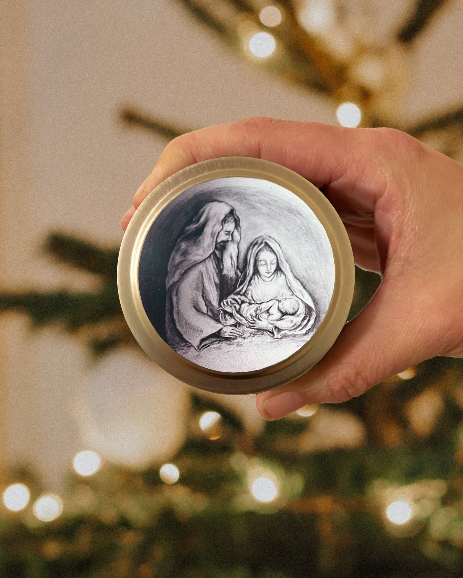 Holy Family Candle Gold Tin (Cranberry Orange Spice)