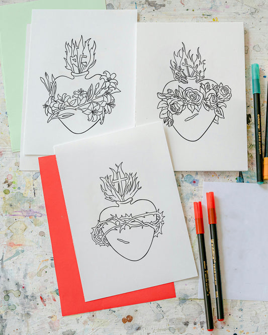 Sacred Hearts Coloring Pages (Digital Download)