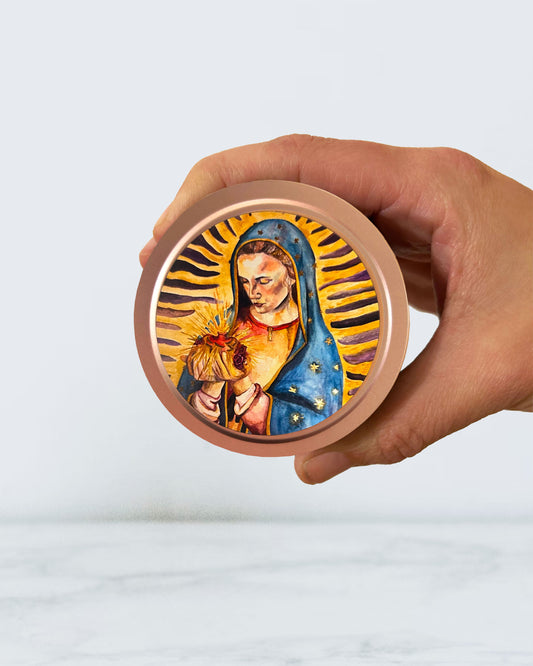 Our Lady of Guadalupe Candle Tin (Spanish Rose Scented, Gold)