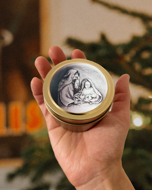 Holy Family Candle Gold Tin (Cranberry Orange Spice)